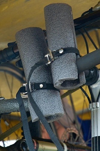 Kola jsou ve vleku uchycena v téměř svislé poloze ve speciální konstrukci. Držák zadního kola se skládá z kolejnice zalomené do tvaru písmene V, přední kolo je poté fixováno v kolejnici a mezi dvěma svislými tyčemi. Tato konstrukce, společně s fixací obou ráfků stahovacími páskami ke kolejnicím, zajišťuje stabilitu kola při přepravě. Do míst, kde by mohlo při otřesech vleku docházet k oděru kola o konstrukci nebo vedlejší kolo, vkládáme pěnové vycpávky.