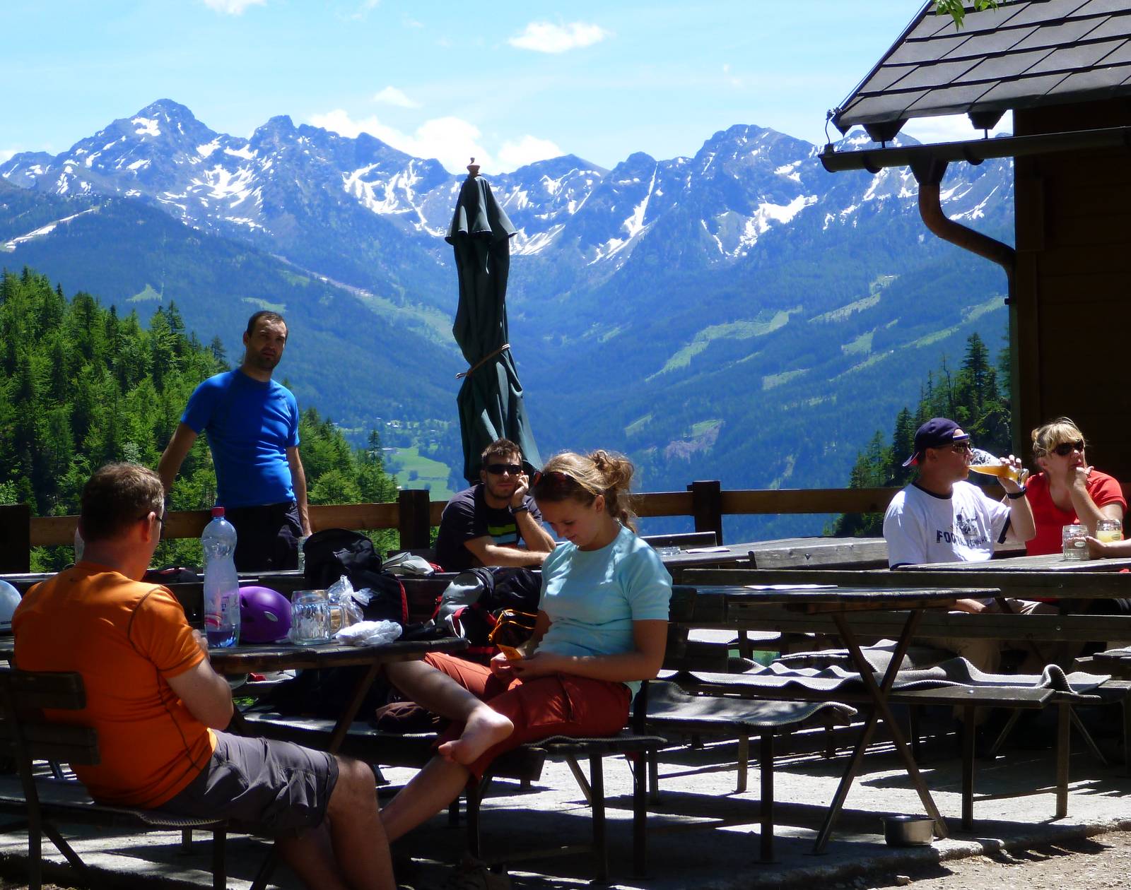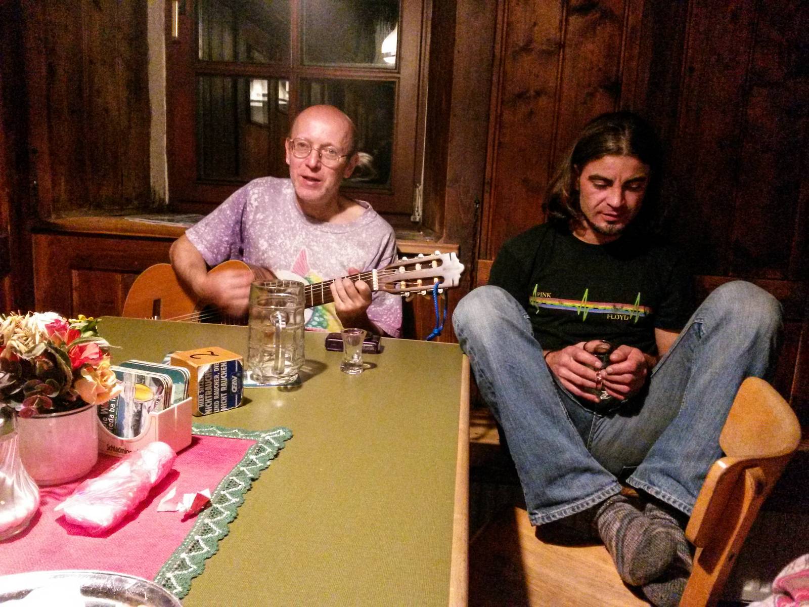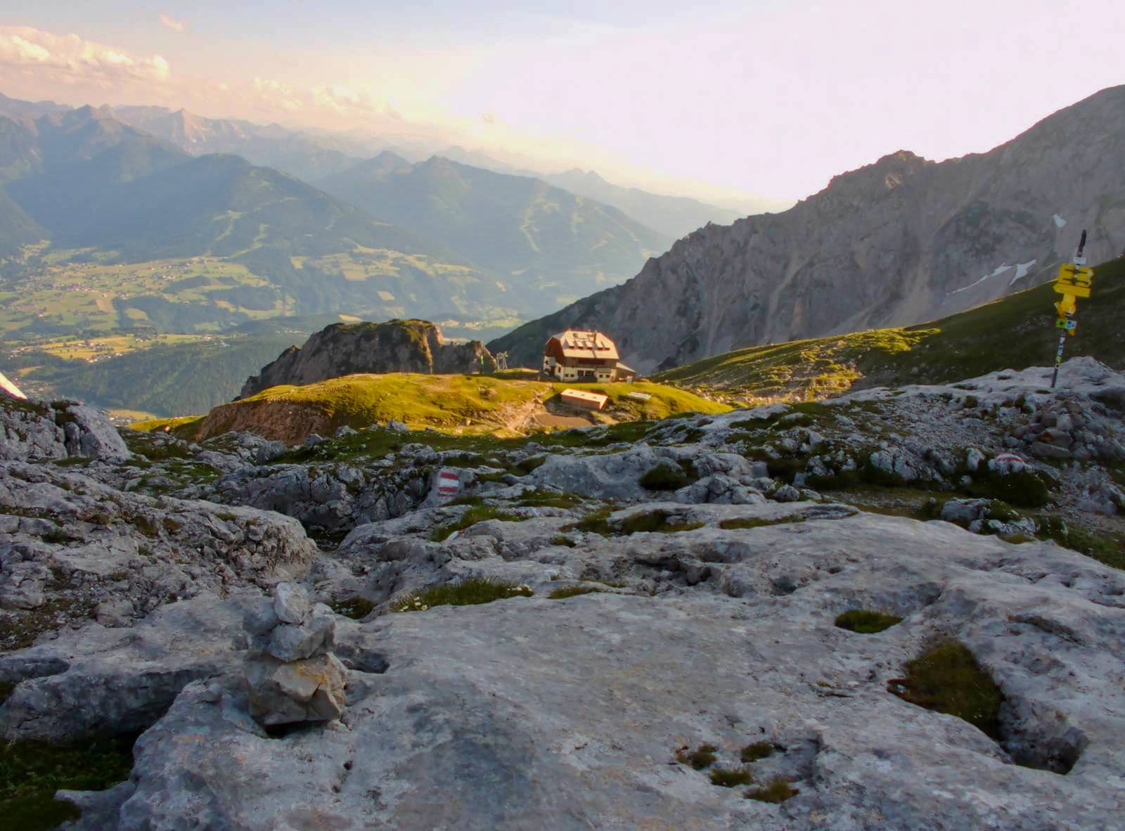 2x na chatě Guttenberghaus v horách. Spí se na matracích ve společné noclehárně. Je nutná hygienická spací vložka nebo lehký spacák.