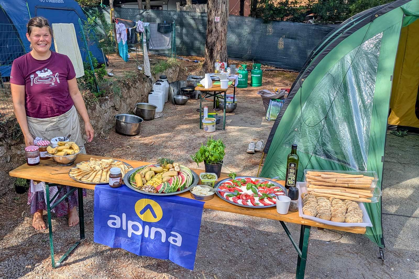 Dostanete polopenzi z naší polní kuchyně. Polopenze začíná 2. den večeří a končí 8. den snídaní. Téměř denně lze obědvat v restauracích, menší obchody a pekařství potkáme každý den. Ceny jsou jen o málo vyšší než u nás, v restauracích je asi 2x dráž.