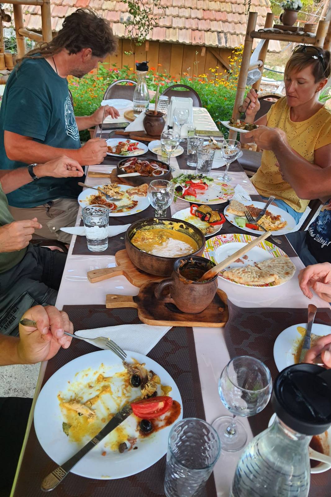 Dostaneme celkem 8x místní bohatou polopenzi podávanou formou více jídel na stole. Svačinu na výlety si nakoupíme v obchůdcích. Během etap většinou nepotkáme žádné restaurace. Z ČR se hodí v omezeném množství trocha vysokoenergetických potravin (čokolády, müsli tyčinky, bonbony, oříšky - lze koupit i na místě). Vaše náklady na jídlo přes den budou cca 10 €/den. Pitná a nezávadná voda je na všech ubytování, přímo z kohoutku.