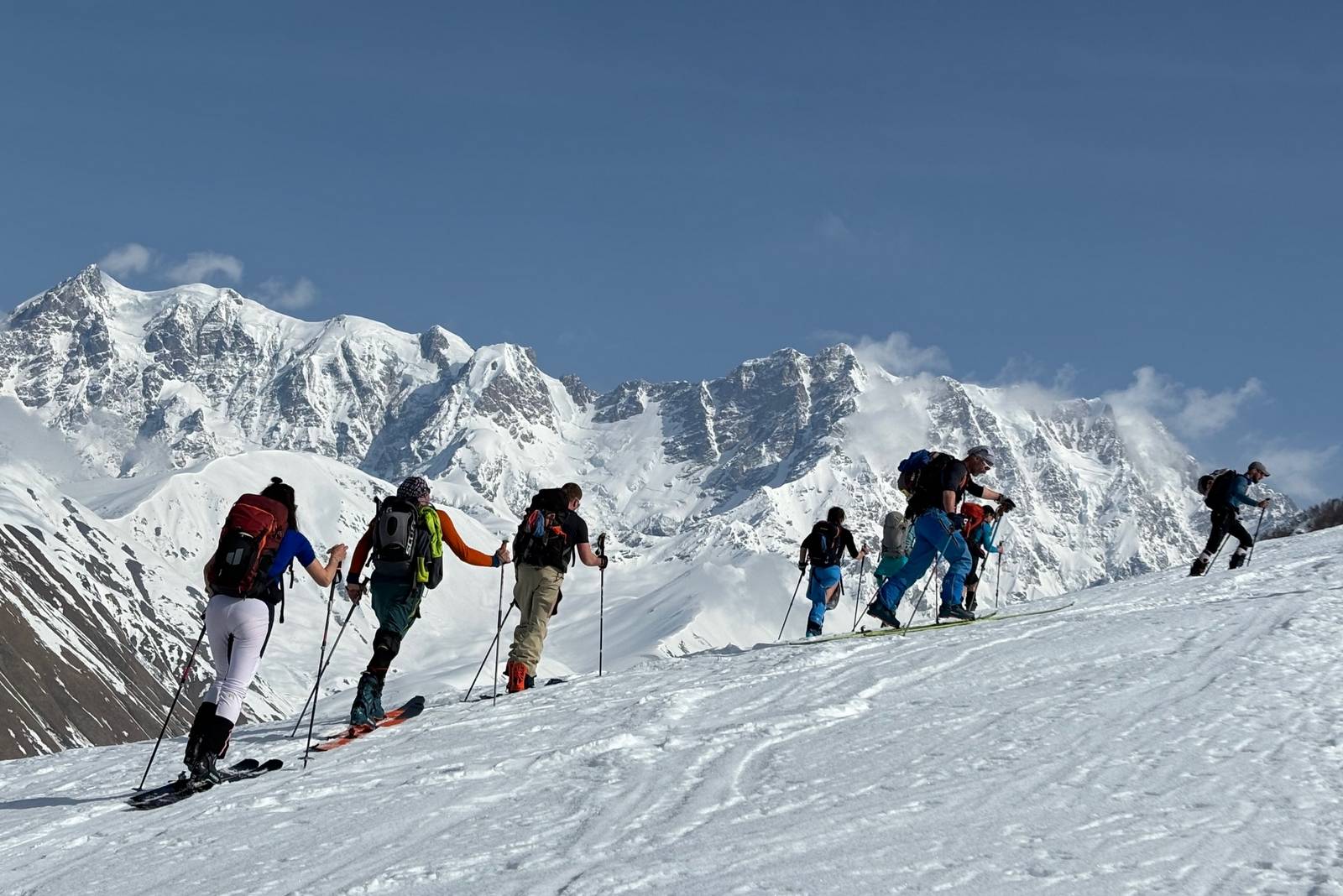 Důležité: Při skialpových túrách 2. den (odpolední část programu) až 6. den je celkové zajištění v kompetenci místních licencovaných horských vůdců (1 guide na max 6 klientů), kteří terén znají nejlépe. Náš skialpový instruktor bude tyto dny působit pouze jako poradce, překladatel a technická a logistická podpora, která je klientům nablízku a v tomto směru k dispozici. 2. den dopoledne a 7. den programu je realizovaný našim skialpových instruktorem.