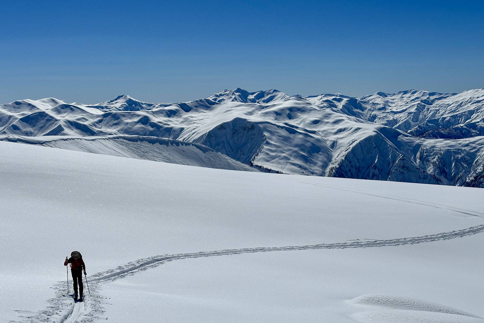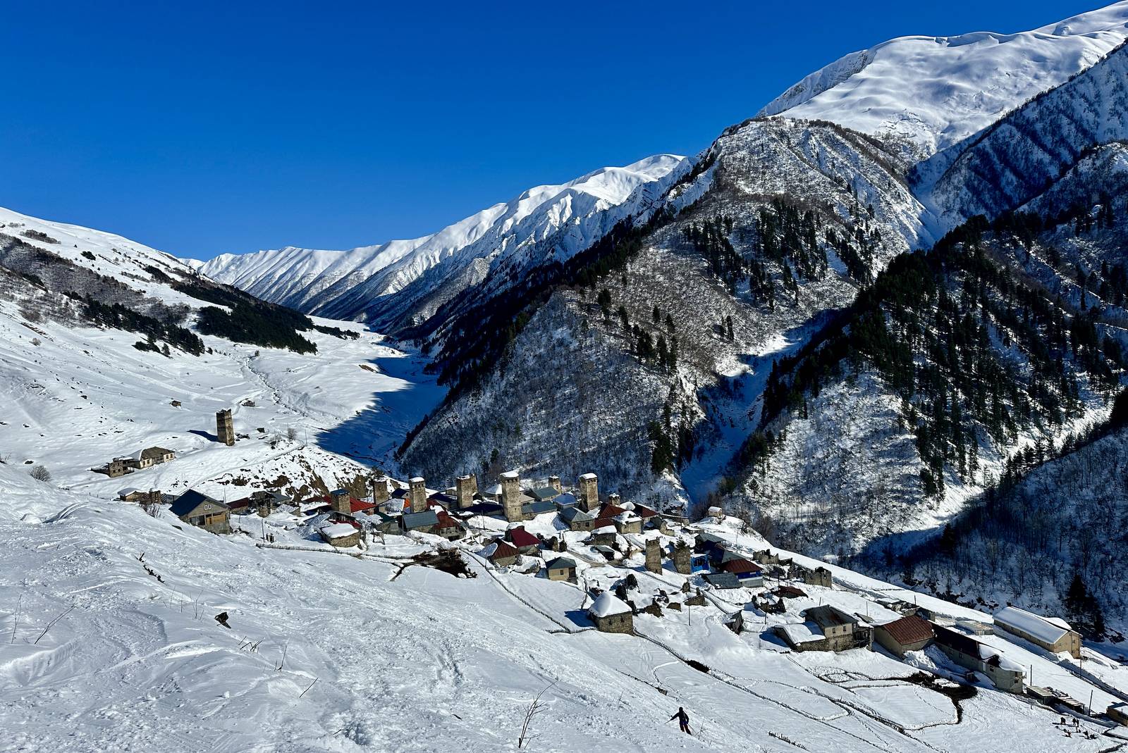 Vyrazíme do Svanetie, legendární oblasti pod vrcholy Vysokého Kavkazu, kde zima drží půl roku a sněhu je víc než času ho projet. Čekají nás výstupy na hřebeny i sjezdy v hlubokém prašanu pod majestátní Tetnuldi (4858 m), náročnější túry v otevřeném terénu i pohodové sjezdy z lanovky až do údolí. Zkušené lyžaře potěší kombinace odlehlé divoké krajiny a technicky zajímavých svahů bez davů, kde si každý oblouk vychutnáme naplno. Po dnech plných adrenalinu a pohybu se zahřejeme v rodinných guesthousech, ochutnáme silné gruzínské víno a horskou kuchyni, která chutná nejlépe po dlouhém dni na lyžích.