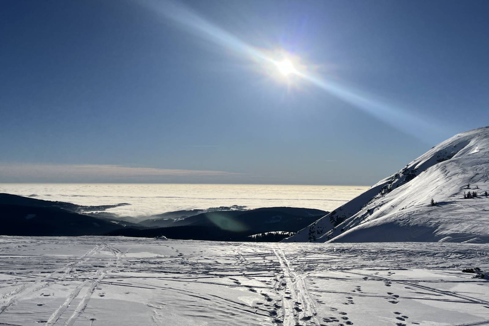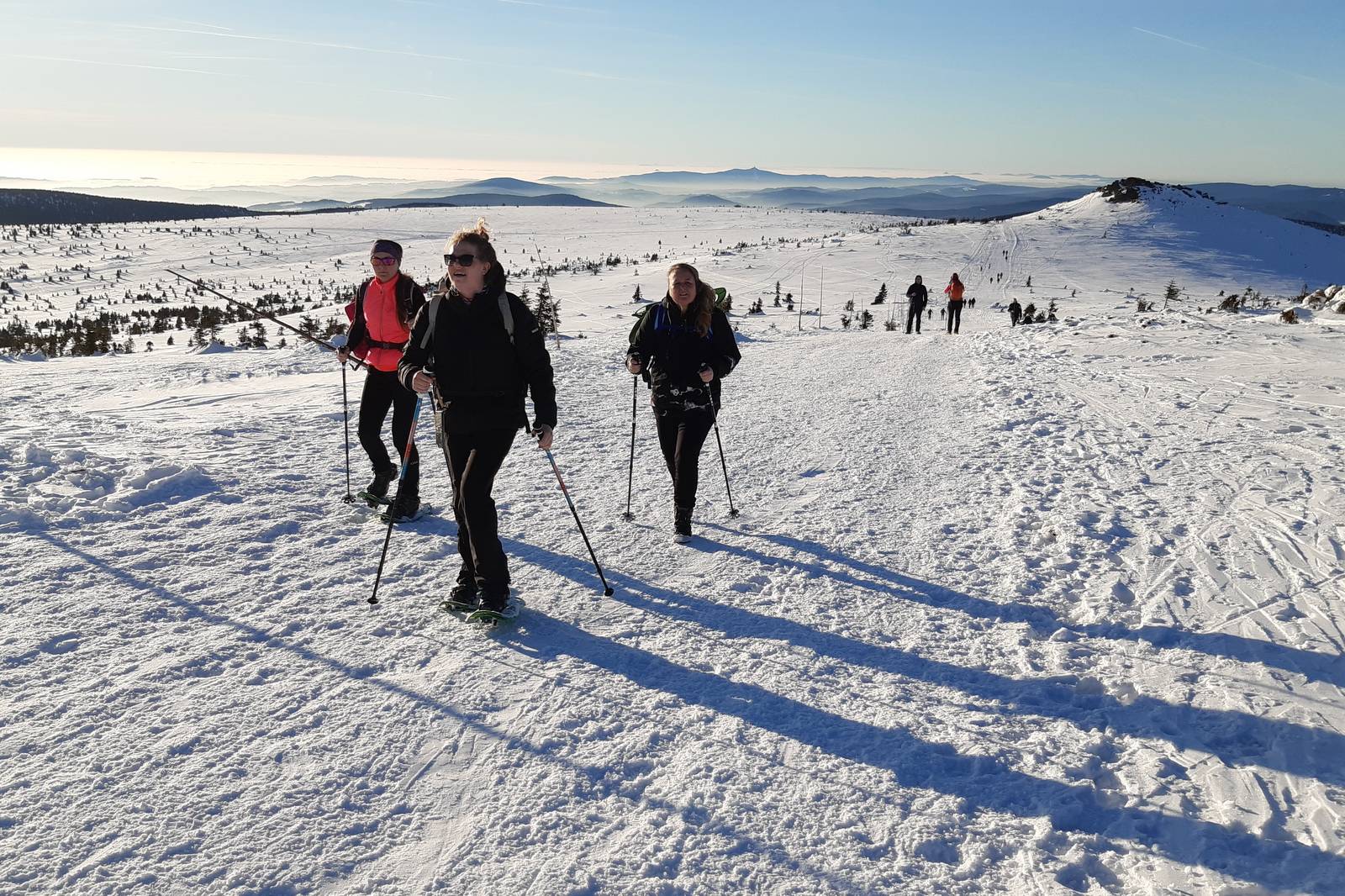 Zasněžené hřebeny, sněhově bílé pláně, Sněžka na horizontu, tiše padající sněhové vločky na hlavu usmívajícího se sněhuláka… Co tomu chybí? Jasně, sněžnice! A k tomu oslava konce starého roku a příchodu toho nového v partě nadšenců do pohybu v zimních horách!