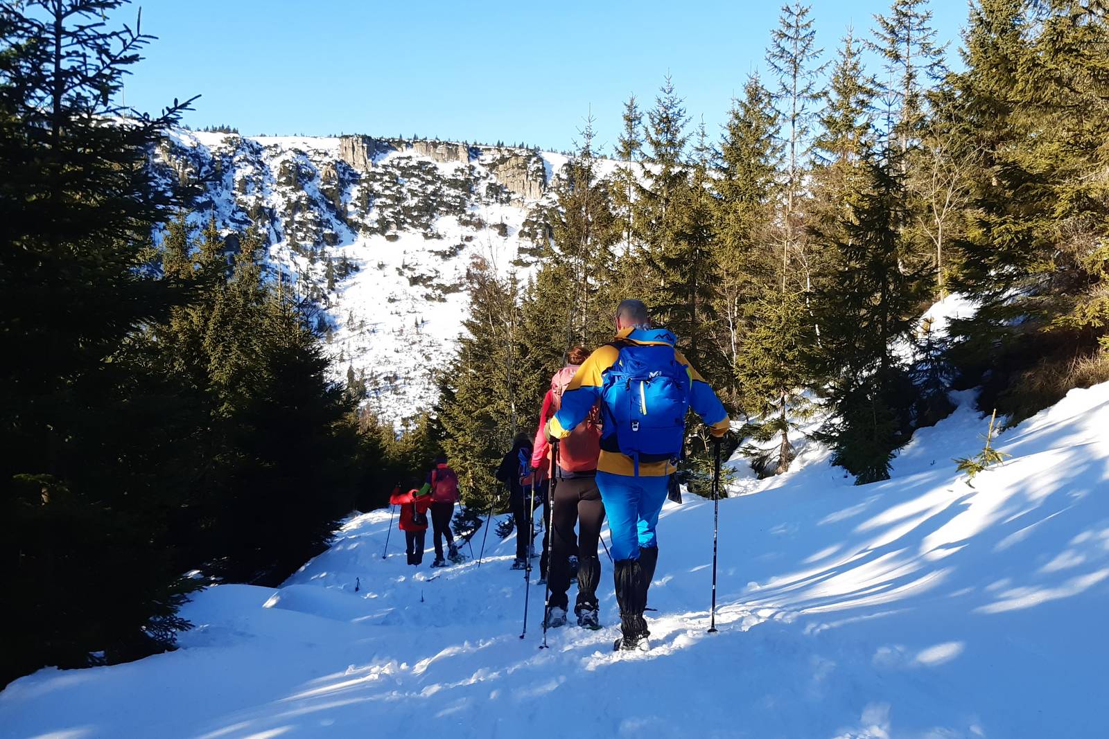 Nutná výbava: sněžnice se zvedací patou a drapáky, nesmeky, turistické teleskopické hole se sněhovými kotouči, návleky, kvalitní, vyzkoušené, pohodlné a nepromokavé pohorky, batoh cca 30 litrů, ideálně s možností připnutí sněžnic, výbava na jednodenní túry, pohodlné a praktické oblečení do každého počasí. Sněžnice vám můžeme zapůjčit z naší půjčovny.