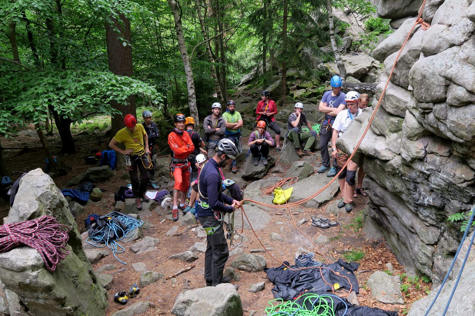 Na kurz si vezměte vlastní lezecké vybavení, minimálně je nutný sedací úvazek, jistící prostředek, 2x 120 cm plochá smyčka, lezečky. Lana do dvojice, helmu, HMS karabinu, odsedku, pomocné reep šňůry 1,5 a 3 m zajistí CK. Pokud máte další vlastní vybavení (expresky, karabiny, vklíněnce, frendy), neváhejte si ho vzít s sebou.