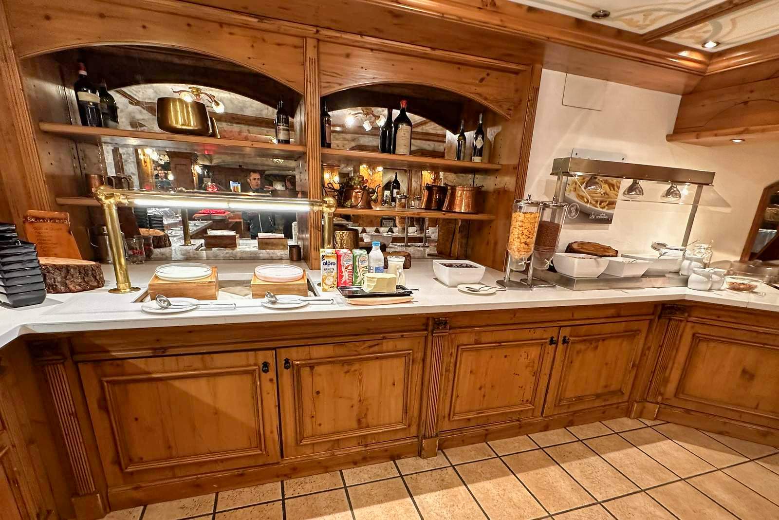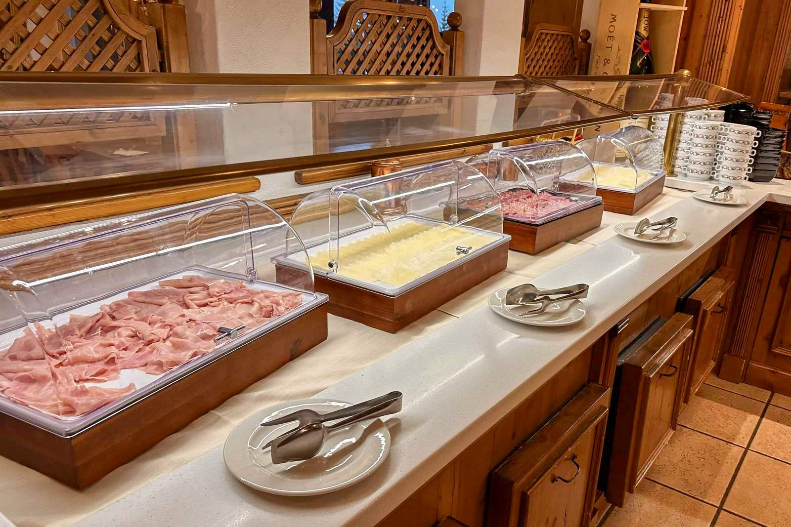 Dostaneme místní polopenzi, která začíná 2. den večeří a končí 5. den snídaní. Snídaně je formou bufetu, na výběr jsou uzeniny, párky, sýry, míchaná a smažená vajíčka, pečivo, musli s jogurtem, marmelády, sladké pečivo, ovoce, k pití džusy, káva a čaje podle výběru. Večeře formou bufetu (Intermonti) zahrnuje výběr ze 3 hlavních jídel, polévku, salátový bar, několik druhů zákusků, vodu a 0,25 l vína. V hotelu Alexander luxusní servírovaná tříchodová večeře (předkrm, hlavní chod a dezert). Nákup potravin je možný v některém z mnoha místních obchůdků. Livigno je bezcelní zóna, což se projevuje hlavně na cenách alkoholu, cigaret a luxusního zboží. Během etap bude několik možností zastavit na občerstvení či zmrzlinu v kavárnách či restauracích. V Livignu v obchodech počítejte s cenami podobnými jako u nás, v restauracích asi 1,5x vyššími a na horských chatách a v restauracích mimo Livigno s cenami až trojnásobnými.