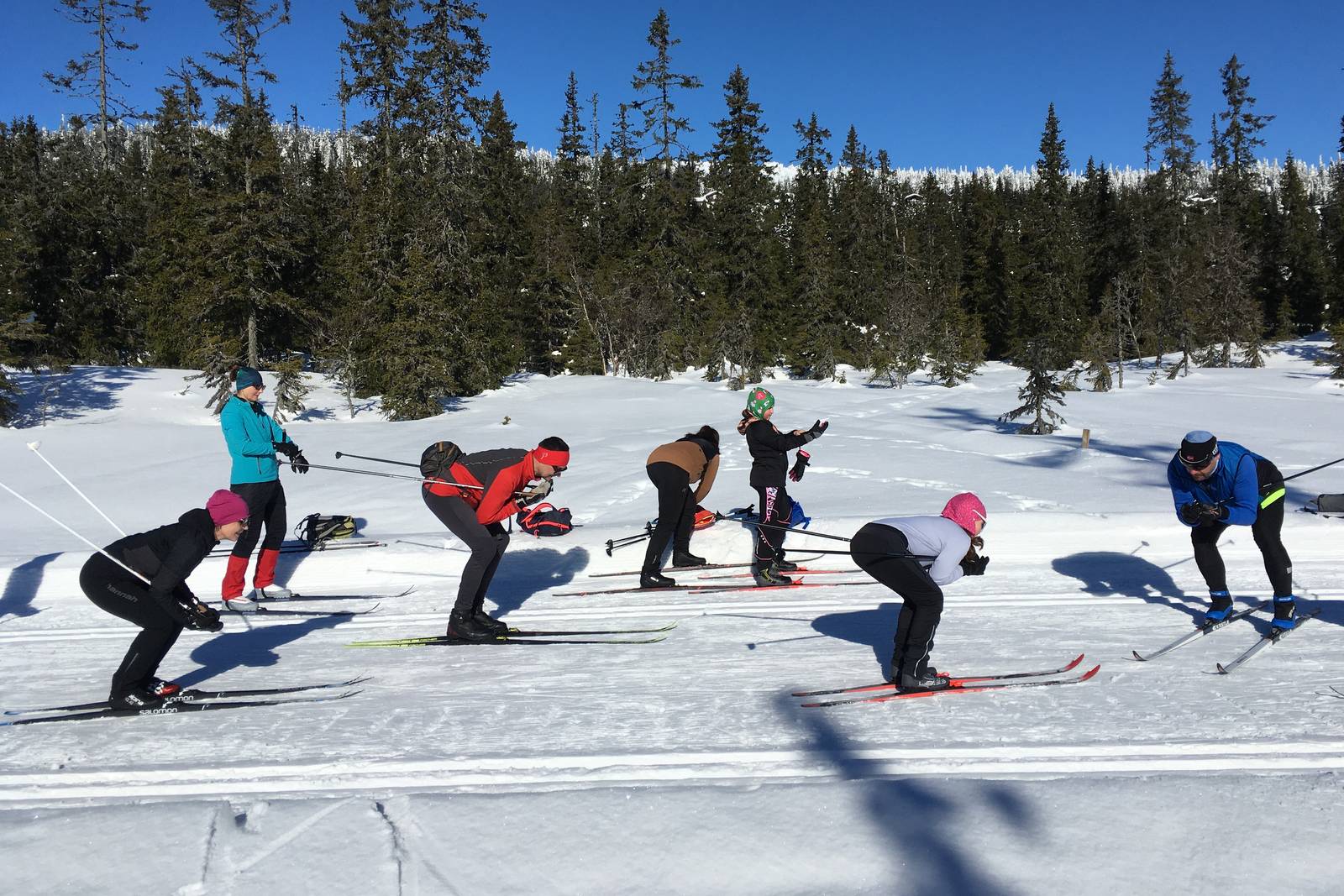 BĚŽECKÉ TRATĚ - Středisko Sjusjoen nám poskytne nekonečnou síť běžeckých stop. Stopy jsou denně upravovány a hlavní trasy jsou při nepříznivém počasí upravovány opakovaně. Většina úseků je tvořena středním pruhem pro skate a po obou stranách vyfrézovanou stopou na klasiku. Jednotlivé úseky mezi křižovatkami jsou většinou 2-5 km dlouhé. Na každé křižovatce nebo odbočce je přehledná mapa s označením naší polohy a délky všech úseků. Kromě toho zde lze najít biatlonový stadión, který je v noci osvětlený a nabízí cca 5 km běžeckých stop a střelnici k možnému využití pro třífázový trénink. Okolní krajina je mírně zvlněná. Cesty mají relativně mírná stoupání či klesání, prudké svahy se zde vyskytují jen zřídka. Při slunečném počasí je lepší zvolit otevřené pláně. Naopak za silnějšího větru je příjemnější pohyb v lesnatých úsecích.