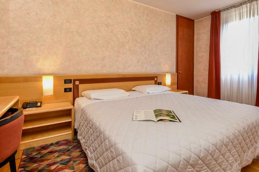 4x ve 4* hotelu Contá ve 2-3 lůžkových pokojích s vlastním sociálním zařízením. K dispozici je wifi, přes noc uzamykatelný prostor na kola s možností nabíjení. Hotel je přímo v klidném centru městečka Pieve di Soligo. Pokoje doobsazujeme do plné kapacity ostatními spolucestujícími.