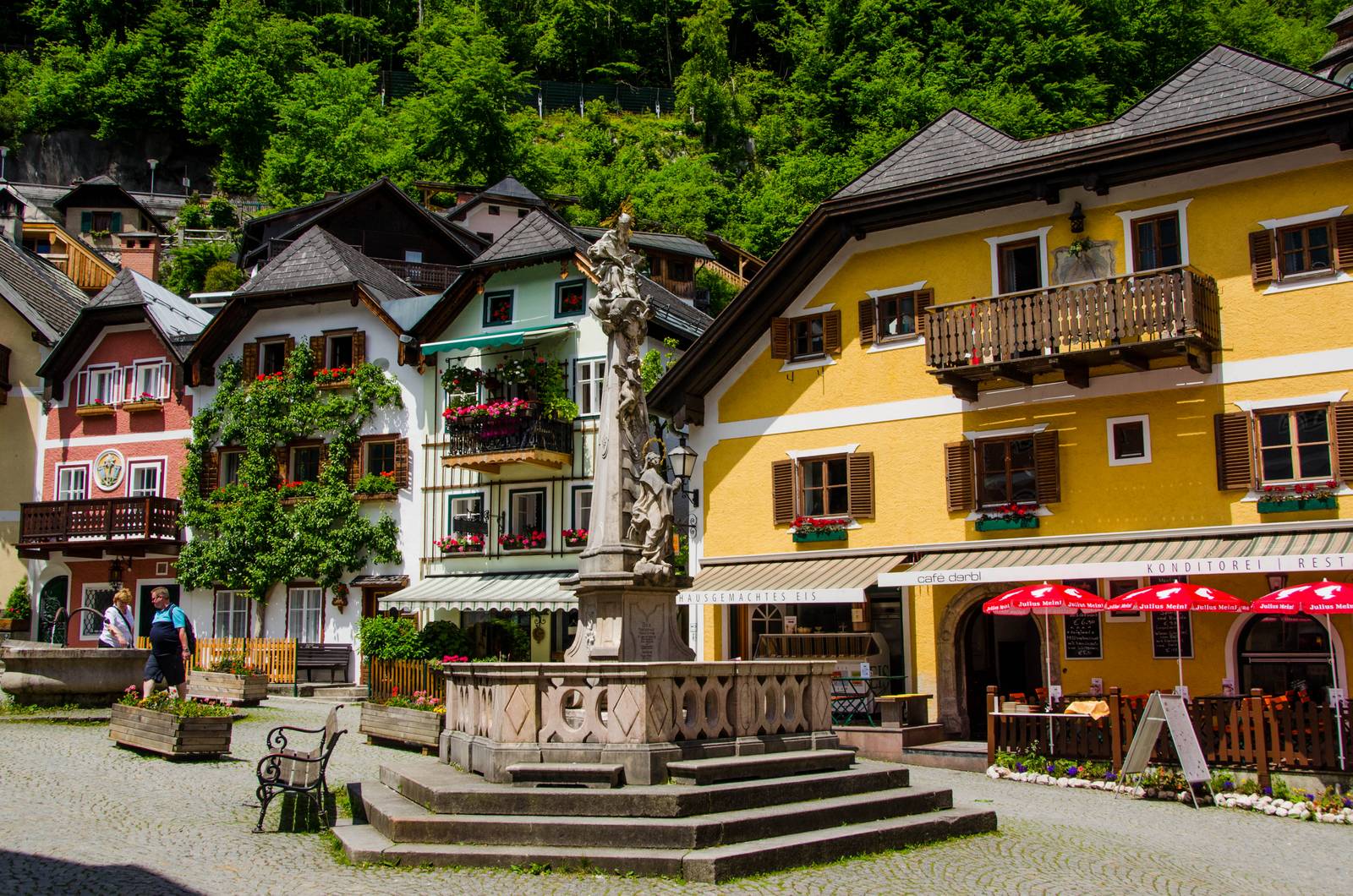 Dostaneme místní polopenzi, která začíná 2. den večeří a končí poslední den snídaní. U zájezdů 6504 a 6507 začíná polopenze 1. den večeří. Snídaně obvykle zahrnuje např. šunku, vejce, sýry, salámy, máslo, džem, pečivo, jogurt, müsli, cornflakes, ovoce, zeleninu, kávu, čaj, mléko a džus. K večeři je polévka, chutné hlavní jídlo (masové i vege), salátový bar a šťáva. Za příznivé ceny se můžete v jídelně sami obsloužit nealko nápoji, pivem, vínem nebo kávou. Přes den se stravujeme z vlastních zásob nebo na horských chatách a v restauracích. Na náměstí v Bad Goisern (100 m) je supermarket, několik příjemných kaváren, pekárna a pizzerie. Ceny v obchodech jsou o něco vyšší než u nás, v restauracích je asi 2x dráž.